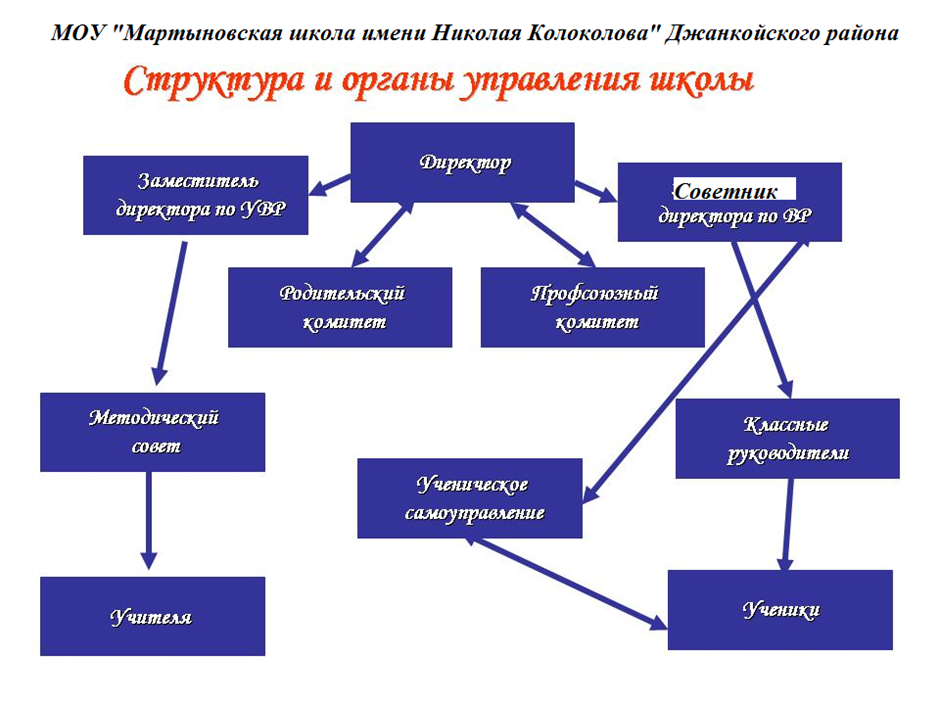 Управление МОУ "Мартыновская школа имени Николая Колоколова" строится на принципах единоначалия и коллегиальности.